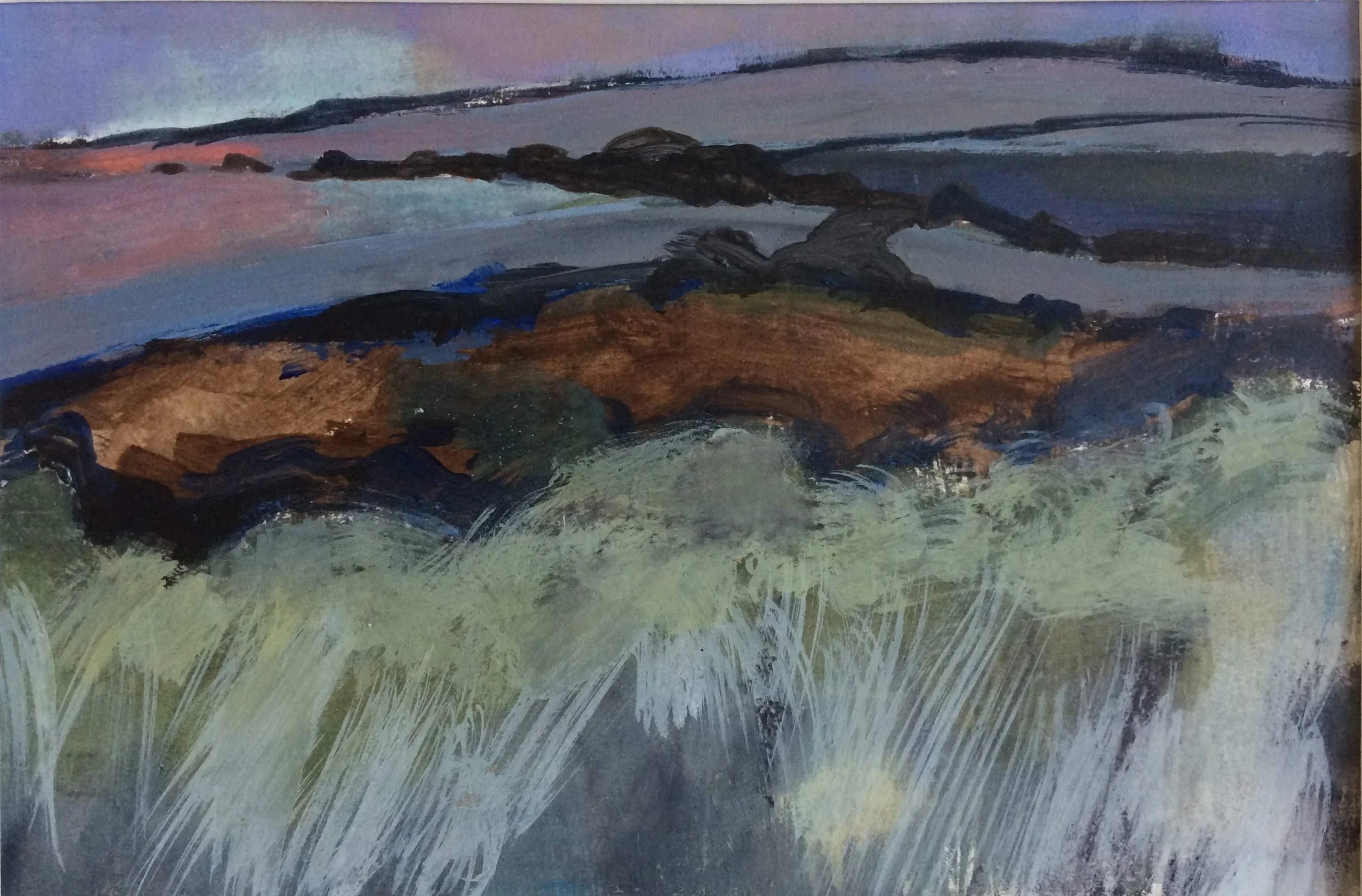 South Downs at Dusk (acrylic and mixed media 21 x 15 cm) sold