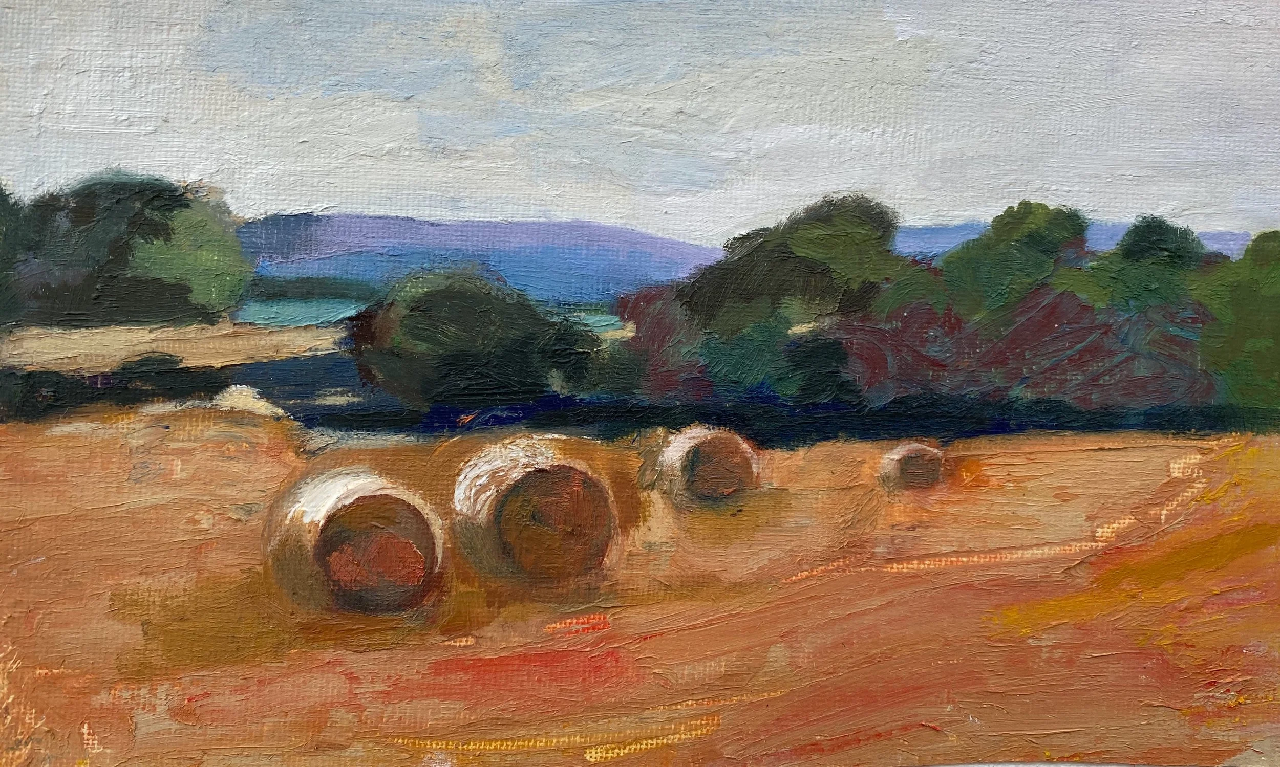 Harvest Time Selmeston 2 (oil on prepared paper 25 x 14 cm)
