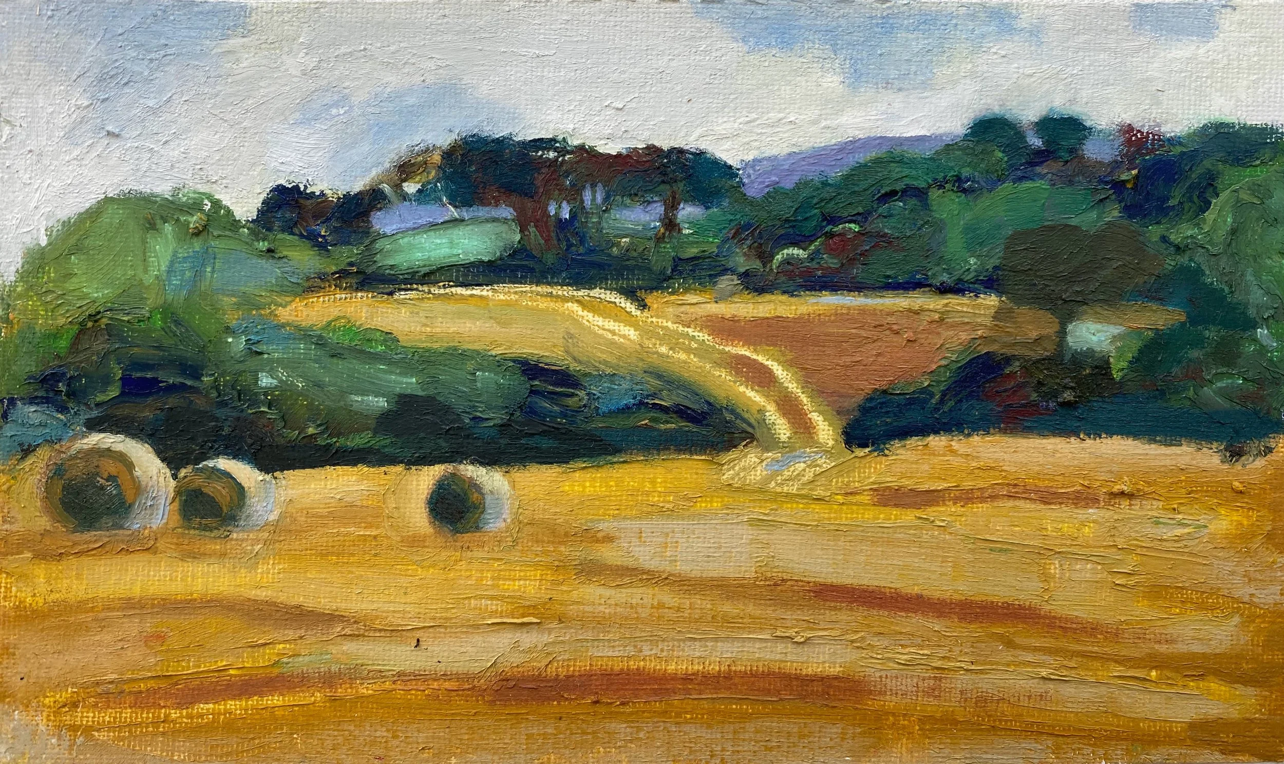 Harvest Time Selmeston 3 (oil on prepared paper 25 x 14 cm)