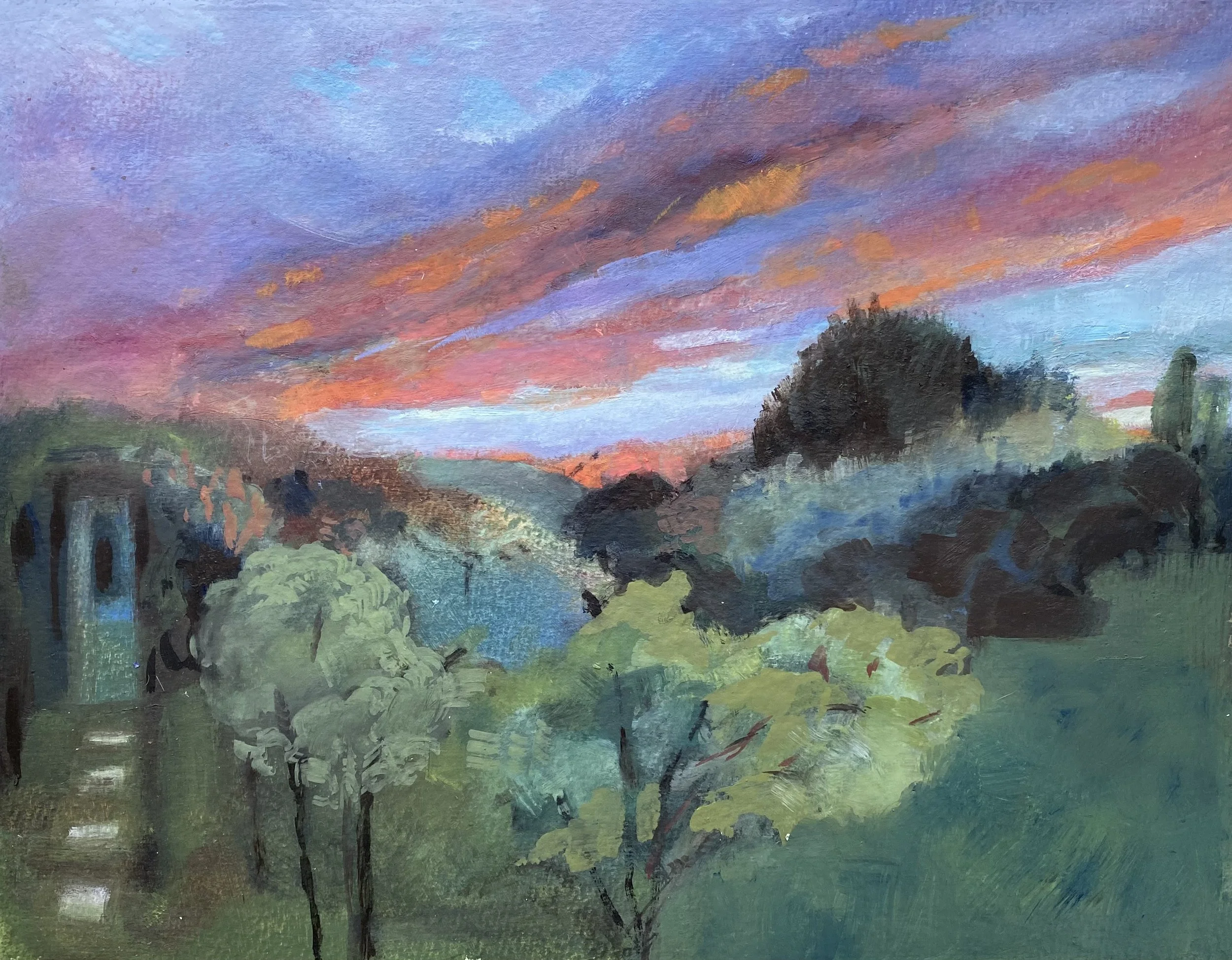 Summer Sunset Selmeston (oil on prepared paper 33 x 27 cm)